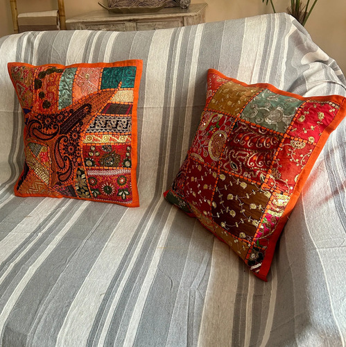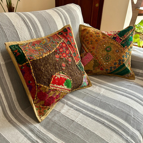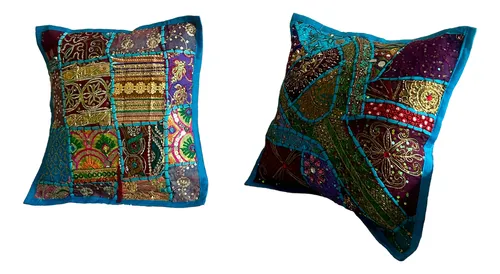 Fundas De Almohadón Bordadas 40cm Importadas India Patchwork