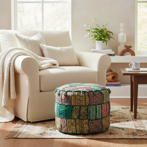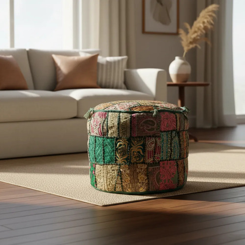 El Puff Funda Covertor Patchwork de Pushkar Tienda es una pieza única que combina funcionalidad y estilo. Con un diseño circular y un atractivo estilo oriental, este puff se convierte en un elemento decorativo ideal para cualquier espacio. Su tela de patchwork aporta un toque de color y textura, convirtiéndolo en un punto focal en tu hogar.