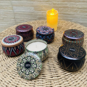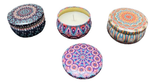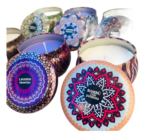 Juego de 3 latas decorativas con velas aromatizadas.-