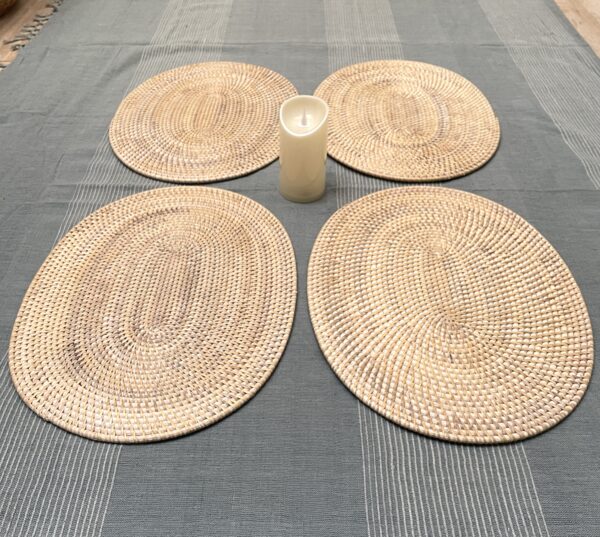 Set x4 Plato Sitio «Ratán Claro» Claro Oval