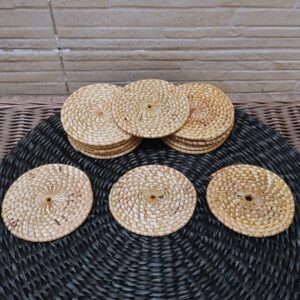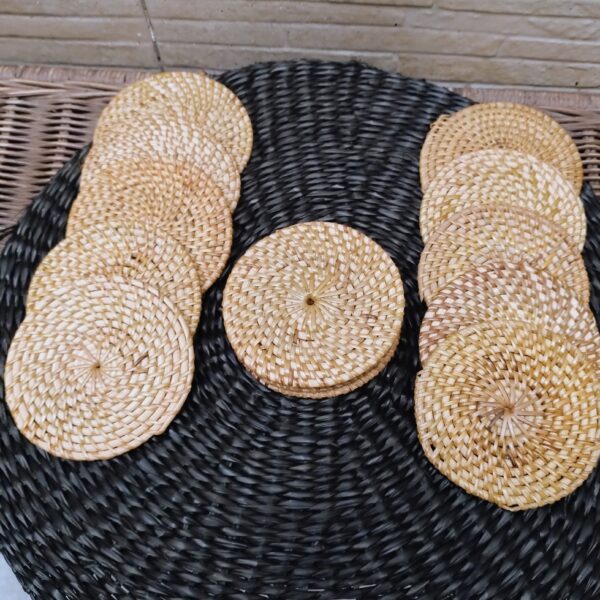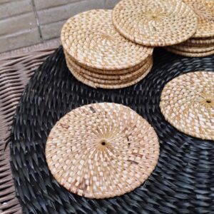 Set x4 Posa Vasos De Ratán Natural y Madera