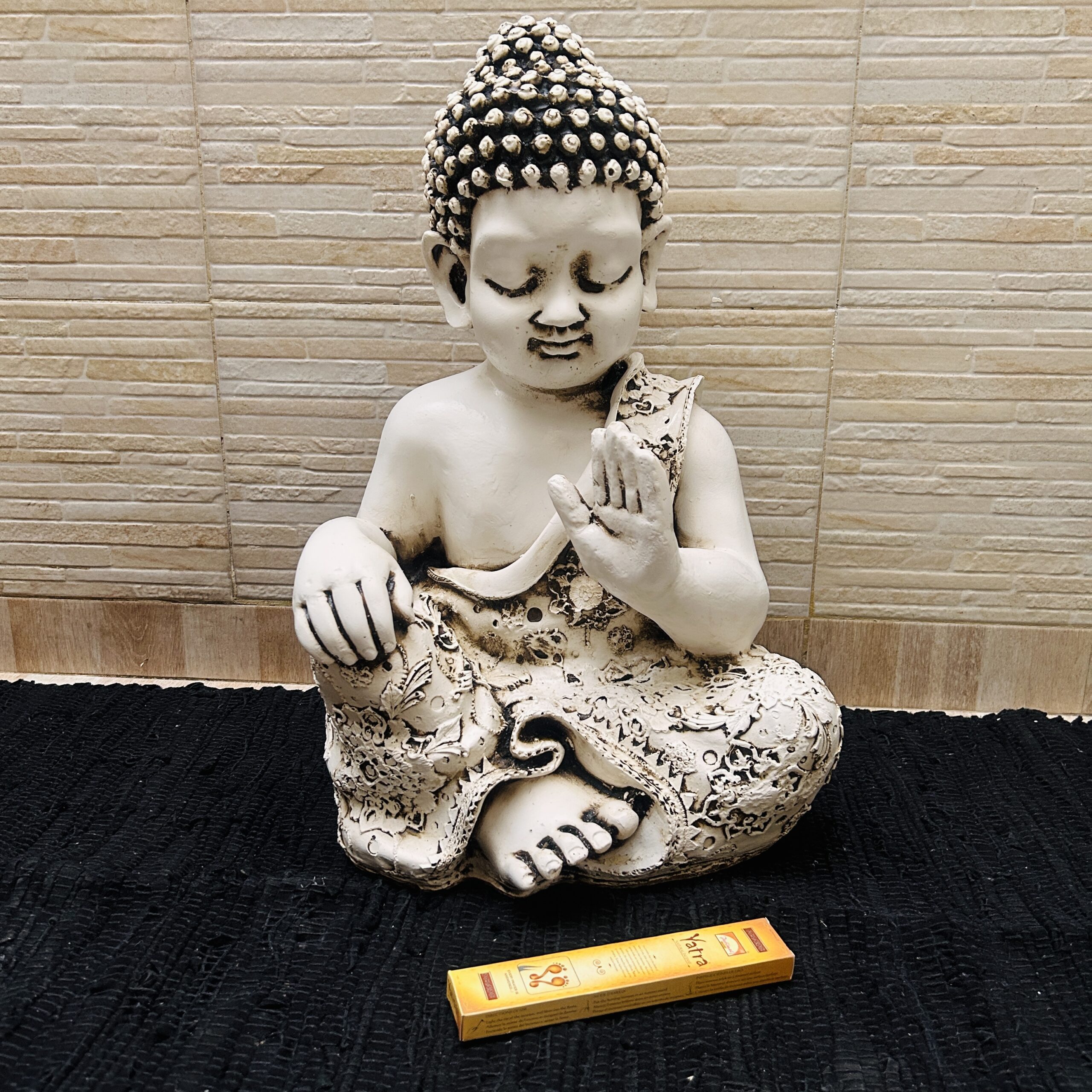 Estatua Buda 40 Cm Meditando Resina Apto Exterior Xa Jardin Blanco