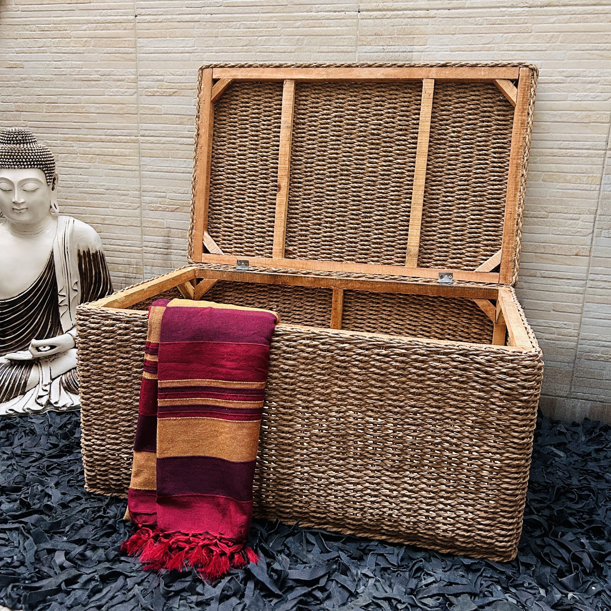 Puff Baúl c/tapa en Fibras Naturales 80 cm