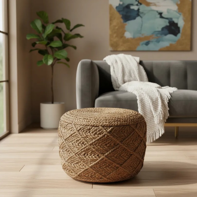 El Puff Natural Yute Rústico es fácil de mover y reubicar, lo que te permite cambiar la disposición de tus espacios con facilidad. Su diseño artesanal refleja la dedicación y el cuidado en cada detalle, convirtiéndolo en una pieza que no solo es funcional, sino también un verdadero arte. Dale a tu hogar un toque distintivo y acogedor con este puff que combina tradición y modernidad.