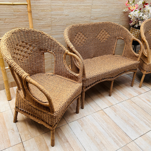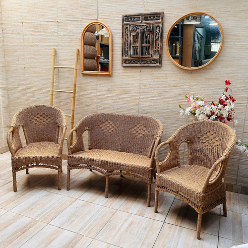 Juego Artesanal Sillones De Fibra Natural X 3 U Apto Galeria